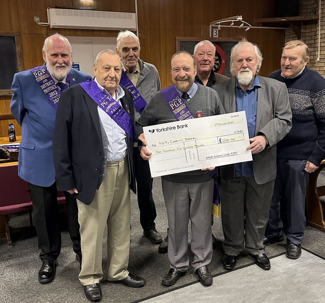 Following its meeting on 10th January 2018, the Eastgate Lodge of the Royal Antediluvian Order of Buffaloes presented a cheque for £5,000 to Peterborough & District Samaritans. Bro’ Pete Pierce, who with his wife Anne collected the largest proportion of the total at dozens of car boot sales throughout the year, said ‘…. We are pleased to be able to support such a worthy cause with a local presence here in Peterborough ….’